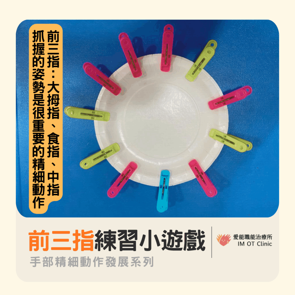 文 / 蘇子茵治療師 很多精細動作的操作,都需要手掌及手指間的合作,例如疊積木、著色、擠牙膏等,這個能力統稱作 […]
